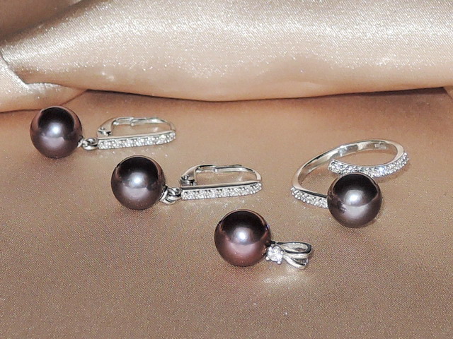 Šperky s perlami BC110WFS-B jsou vyrobeny z kování z bílého zlata ryzosti 585/1000 (14kt.) Kombinovaného se zirkony a pravých černých sladkovodních perel nejvyšší kvality AAA. Popis jednotlivých šperků najdete zde: náušnice BC024WFE-B, přívěsek BC025WFP-B, prsten BC029WFR-B. Jednotlivé šperky lze zaměňovat za jiné druhy, případně volit různé velikosti perel pro různé šperky a tak tvořit různé kombinace vzhledu i ceny celého setu šperků. O možnostech, které nejsou dány ve výběru se informujte předem. Šperky dostanete v dárkové kazetě s certifikátem pravosti a v rámci Česka a Slovenska vám je doručíme zdarma.