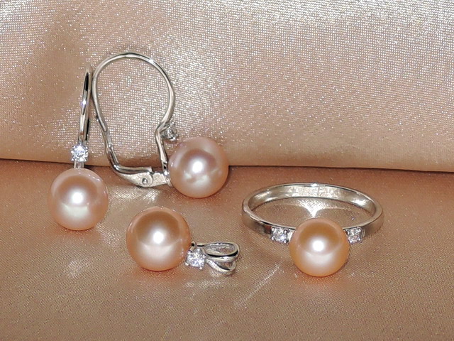 Šperky s perlami BC140WFS-P jsou vyrobeny z kování z bílého zlata ryzosti 585/1000 (14kt.) kombinovaného se zirkony a pravých broskvově růžových sladkovodních perel nejvyšší kvality AAA. Popis jednotlivých šperků najdete zde: náušnice BC022WFE-P, přívěsek BC025WFP-P, prsten BC027WFR-P. Jednotlivé šperky lze zaměňovat za jiné druhy, případně volit různé velikosti perel pro různé šperky a tak tvořit různé kombinace vzhledu i ceny celého setu šperků. O možnostech, které nejsou dány ve výběru se informujte předem. Šperky dostanete v dárkové kazetě s certifikátem pravosti a v rámci Česka a Slovenska vám je doručíme zdarma.