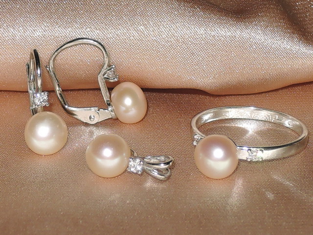 Šperky s perlami BC180SBS-P sestávají z kování ze stříbra ryzosti 925/1000 a pravých broskvově růžových sladkovodních perel. Částečně zploštělé perly s povrchovou kvalitou AAA mají hladký povrch a velmi vysoký lesk. Popis jednotlivých šperků najdete zde: náušnice BC022SBE-P, přívěsek BC026SBP-P, prsten BC027SBR-P. Jednotlivé šperky lze zaměňovat za jiné druhy, případně volit různé velikosti perel pro různé šperky a tak tvořit různé kombinace vzhledu i ceny celého setu šperků. O možnostech, které nejsou dány ve výběru se informujte předem. Šperky dostanete v dárkové kazetě.