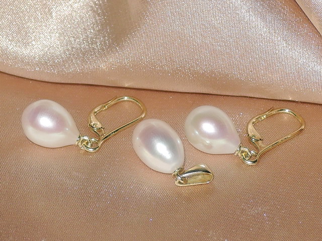 Elegantní set šperků ze sladkovodních perel sestává z náušnic FTye005wj a přívěsku FTyp005wJ. Použité jsou kování ze žlutého zlata ryzosti 585/1000 (14kt.). Do kování jsou osazeny pravé sladkovodní perly tvaru slzy s povrchovou kvalitou AA + velikosti cca 10 x 12 mm. Šperky posíláme v dárkovém balení spolu s certifikátem pravosti. V Čechách máte dopravu zdarma.