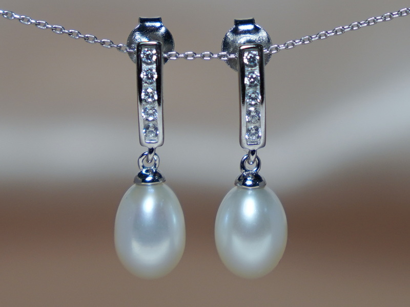 Perly o velikosti cca 7 x 9 mm mají oválný tvar, hladký povrch a vysoký lesk. Stříbrné kování náušnic o hmotnosti 1,3 g jsou kombinovány každá s 5 zirkony a jsou ergonomicky tvarovány tak, aby kopírovaly ucho a neodstávaly. Celková výška náušnic je 23 mm a zavírání přes puzety. Povrch stříbrných kování je upraven rhodiem, takže nezčerná. Náušnice jsou součástí setu perlových šperků PS777B.