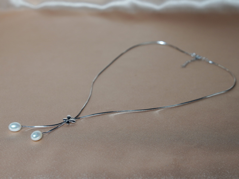 Perly o velikosti přibližně 6×8 mm mají oválný tvar, hladký povrch a vysoký lesk. Náhrdelník má délku přibližně 40 cm a doplňuje jej 5 cm prodlužovací řetízek, díky kterému se snadno přizpůsobí různým typům postavy. Ve středu náhrdelníku se nachází jemný motýlek s perlami, který slouží jako přívěsek o délce 5 cm. Celý povrch je rhodiován pro delší životnost a stálý lesk. Kování náhrdelníka má hmotnost cca 4,5 g a je součástí perlového setu PS222B.