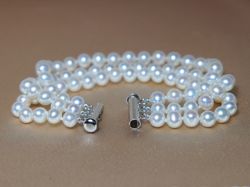 Kulato oválné perly jsou v kvalitě AA+ (tvar AA, čistota povrchu AA+, lesk AAA), mají hladký povrch a vysoký lesk. Perlový náramek je vázán na pevné hedvábné niti a mezi každou perlou jsou navázány uzlíky kvůli hezčímu vzhledu a bezpečnosti. Délka náramku je 19,5 - 20 cm a ukončen je uzávěrem ze stříbra ryzosti 925/1000 o hmotnosti 1,6 gramu. Na požádání vyrobíme náramek v jiné délce s přiměřeným zvýšením nebo snížením ceny.
