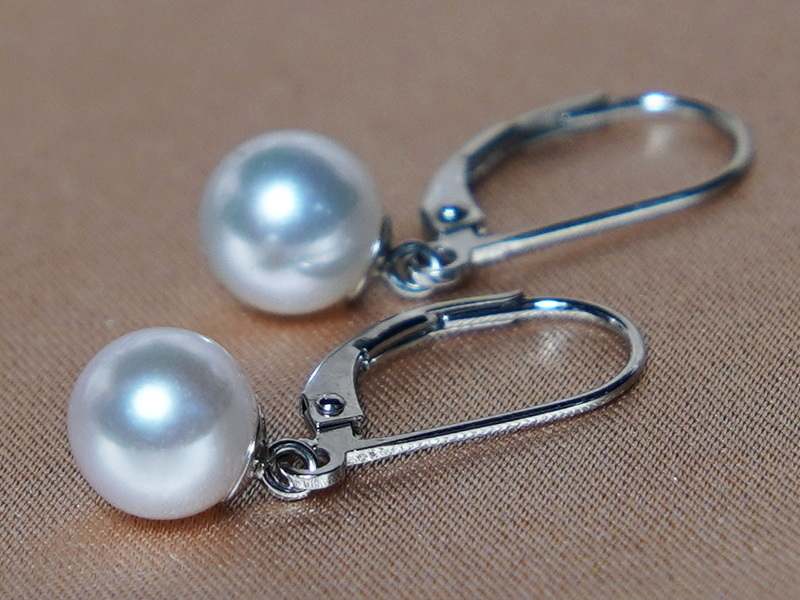 Mořské akoya perly kvality AAA mají kulatý tvar, hladký povrch a velmi vysoký lesk. Hmotnost páru kování je cca 0,70 gramu. Perly můžete volit od velikosti 6 mm do 7,5 mm. Na fotografiích jsou perly velikosti 7 mm. Větší akoya perly na tomto typu patentu máme v nabídce s mohutnějším kováním pod označením AE001C.