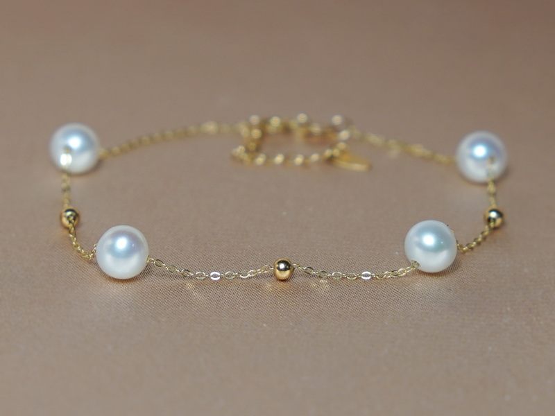 Zlatý náramek 18K s pravými sladkovodními perlami