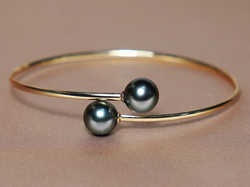 Perlový náramek WW08YB-TT vyroben ze žlutého zlata ryzosti 750/1000 (18 kt.) a dvou pravých tahitských perel. Perly nejvyšší kvality AAA mají kulatý tvar, hladký povrch a velmi vysoký lesk. Velikosti perel můžete zvolit 8 mm nebo 8,5 mm. Na fotografii jsou perly velikosti 8,5 mm. Pro větší perly doporučujeme mohutnější konstrukci náramku z naší nabídky.